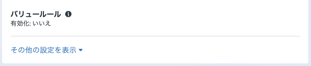 ①広告セットの編集画面にある”バリュールール”の箇所にある「その他の設定を表示」をクリックする。