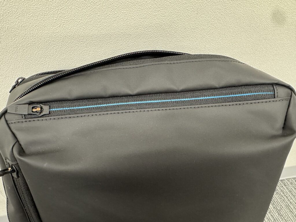 持ち手がある事は僕にとって重要ポイントだったのでめちゃくちゃありがたいのですが、後ろ側のチャックを開けた状態でこの持ち手を持ってしまうとべろ~んってなってしまうんです。。汗