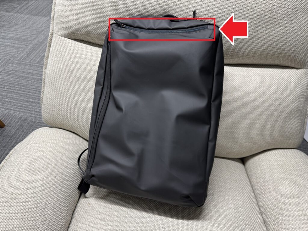 この持ち手にリュックを持ち上げる力が集中するとリュックの重さでチャックが勝手に空いてしまってベローンってなってしまうという感じですね。。。