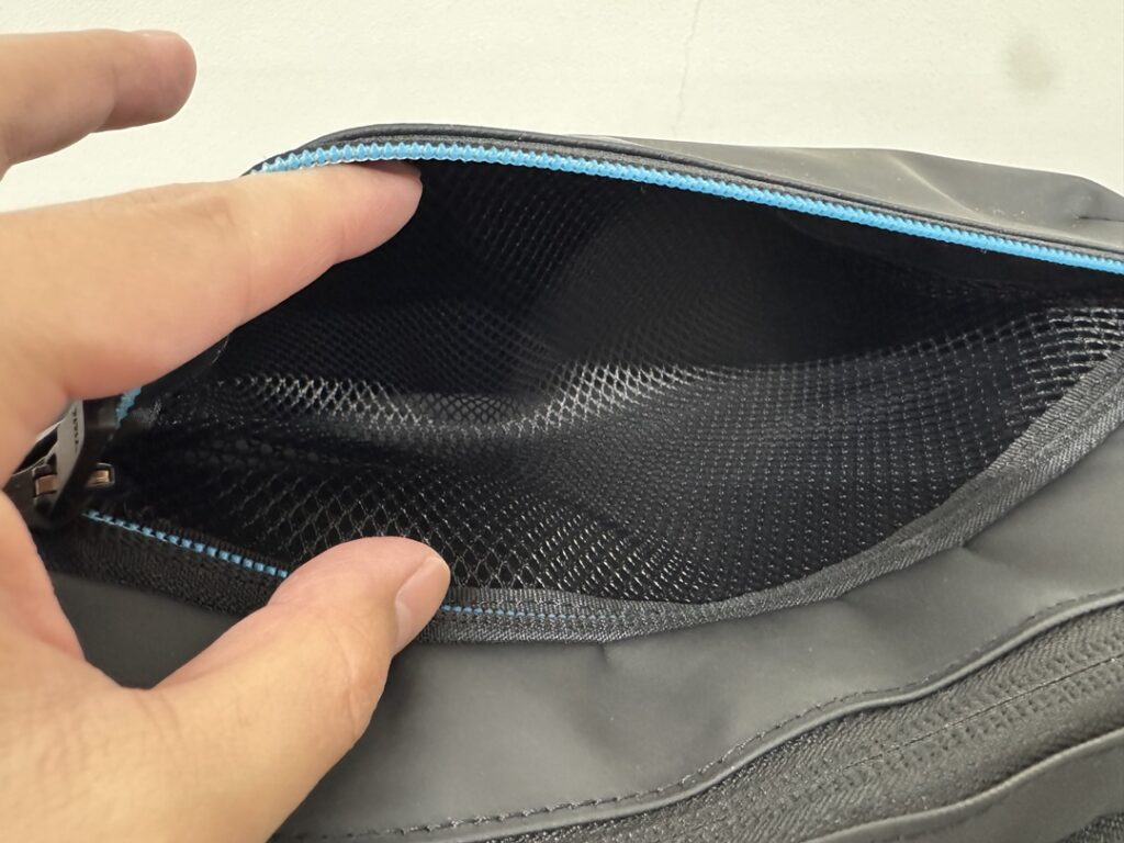 収納できるポケットなどは結構豊富にありまして、まずこの部分に小さいポケットがあります。