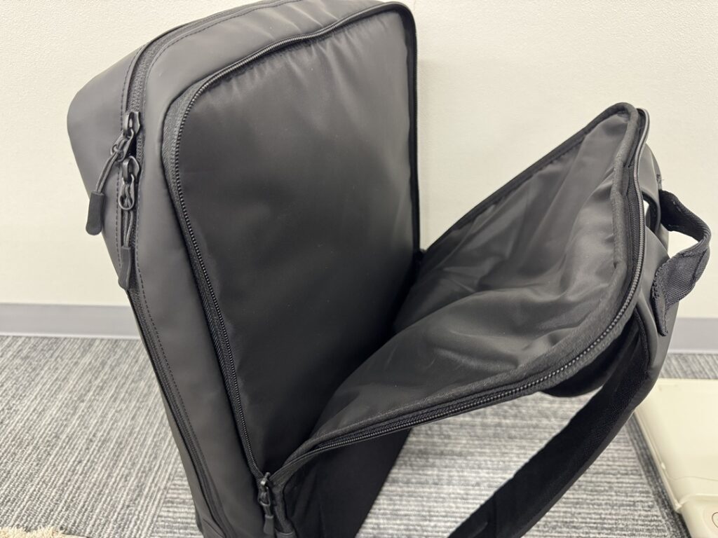 画像ではちょっと分かりにくいのですが、リュックを横にして撮影しました。ここのポケットが結構広くて僕は持て余してます・・・。